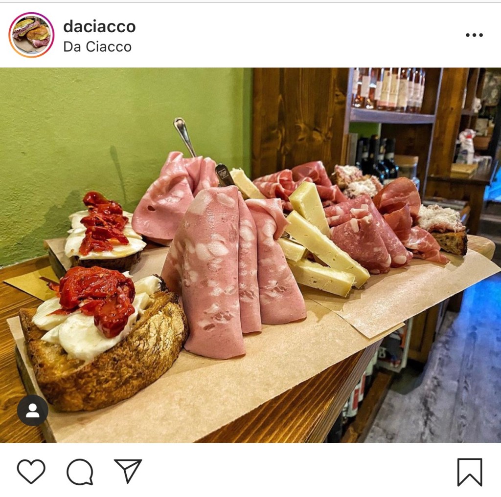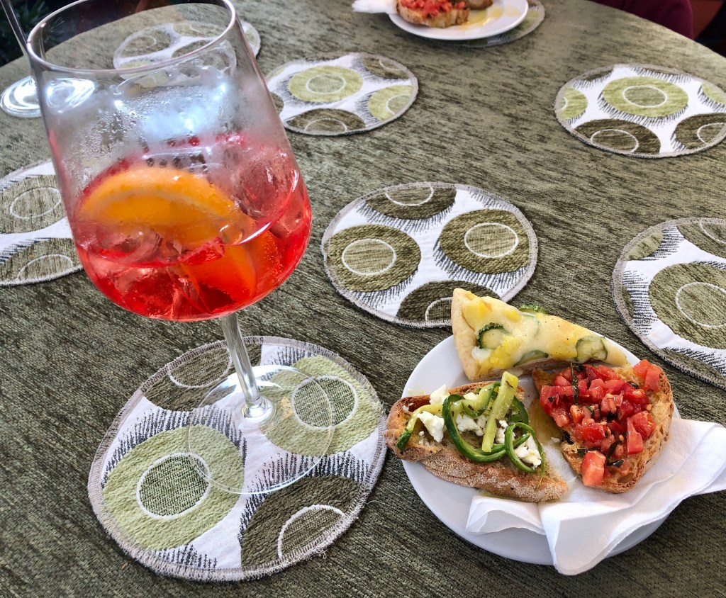 This is our spot for afternoon spritz, always accompanied by an excellent selection of small plates. She makes a mean bruschetta (believe me, it’s an art form), as well as quirky presentations, like the classic bread salad panzanella in beer glasses.