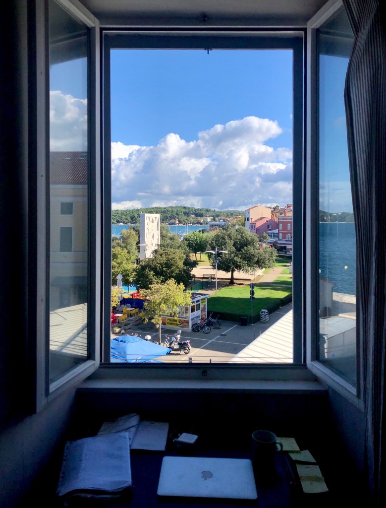 Happy Writer. Here’s the View from My Writing Desk. Hvala & Grazie, Rovinj!