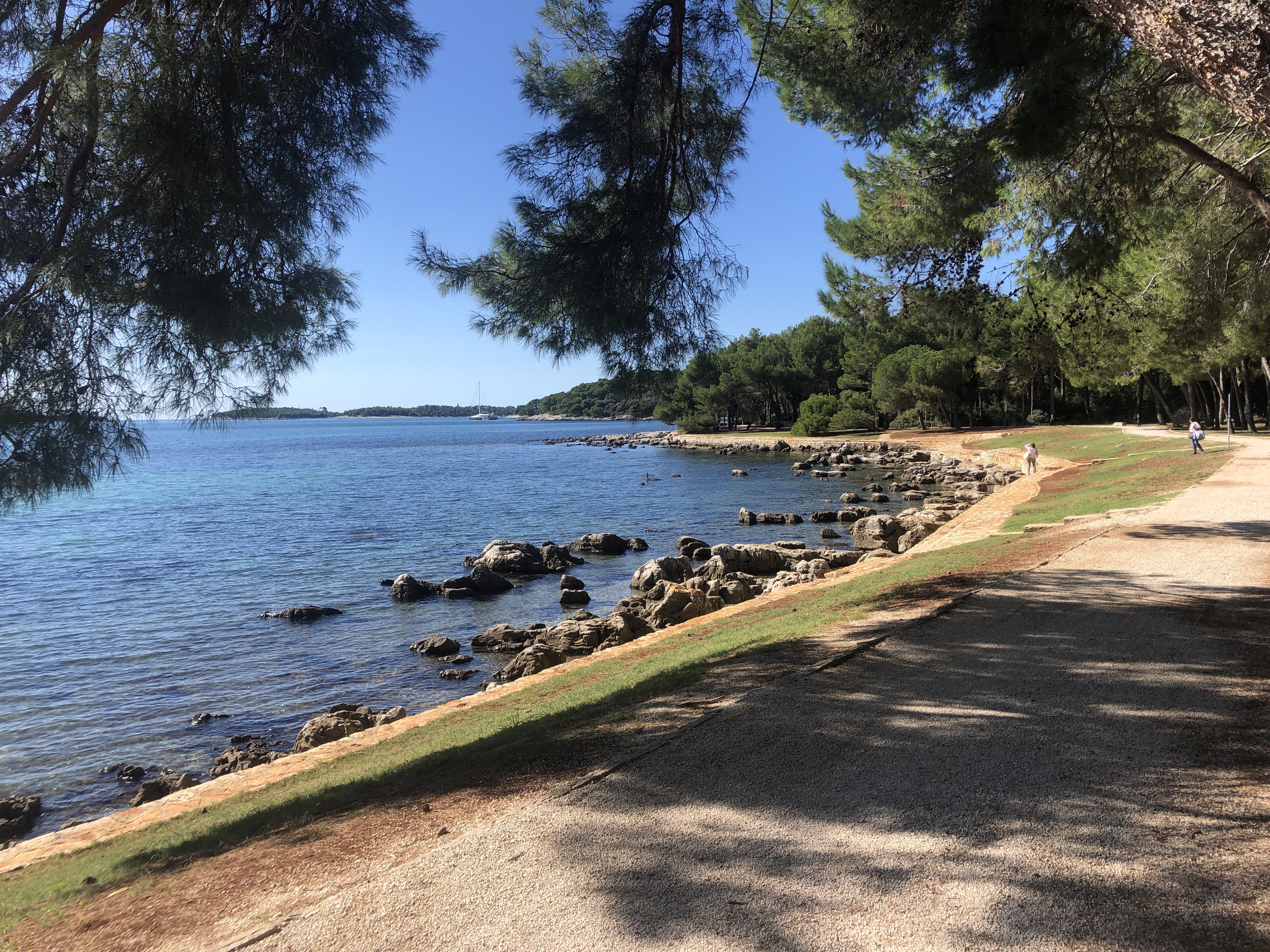 Our search for outdoor goodnesses is always rewarded in Rovinj. Less than a mile along the harbor front brings us to Golden Cape Park, featuring mile after mile of shaded seaside running and cycling trails, along with a popular rock climbing quarry and series of beach huts selling cold drinks and good vibes.