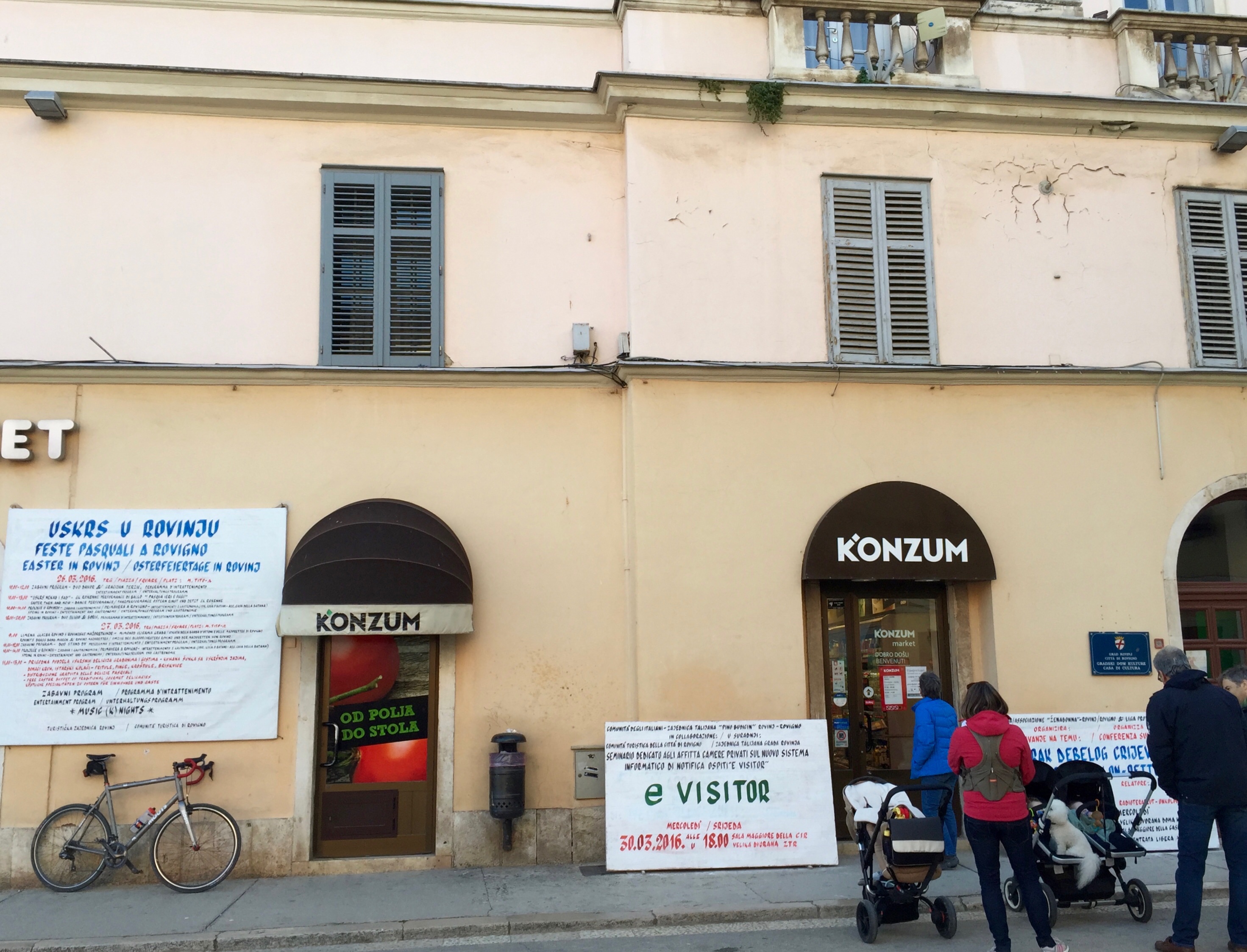 I love how the town announces events and happenings via hand-painted signs propped outside the local grocery market. I love how you can hear locals speaking in two languages, often housed within one sentence. I love following “Grazie!” with “Hvala!” and realizing I’ve just given thanks in two languages with drastically different origins and sounds.