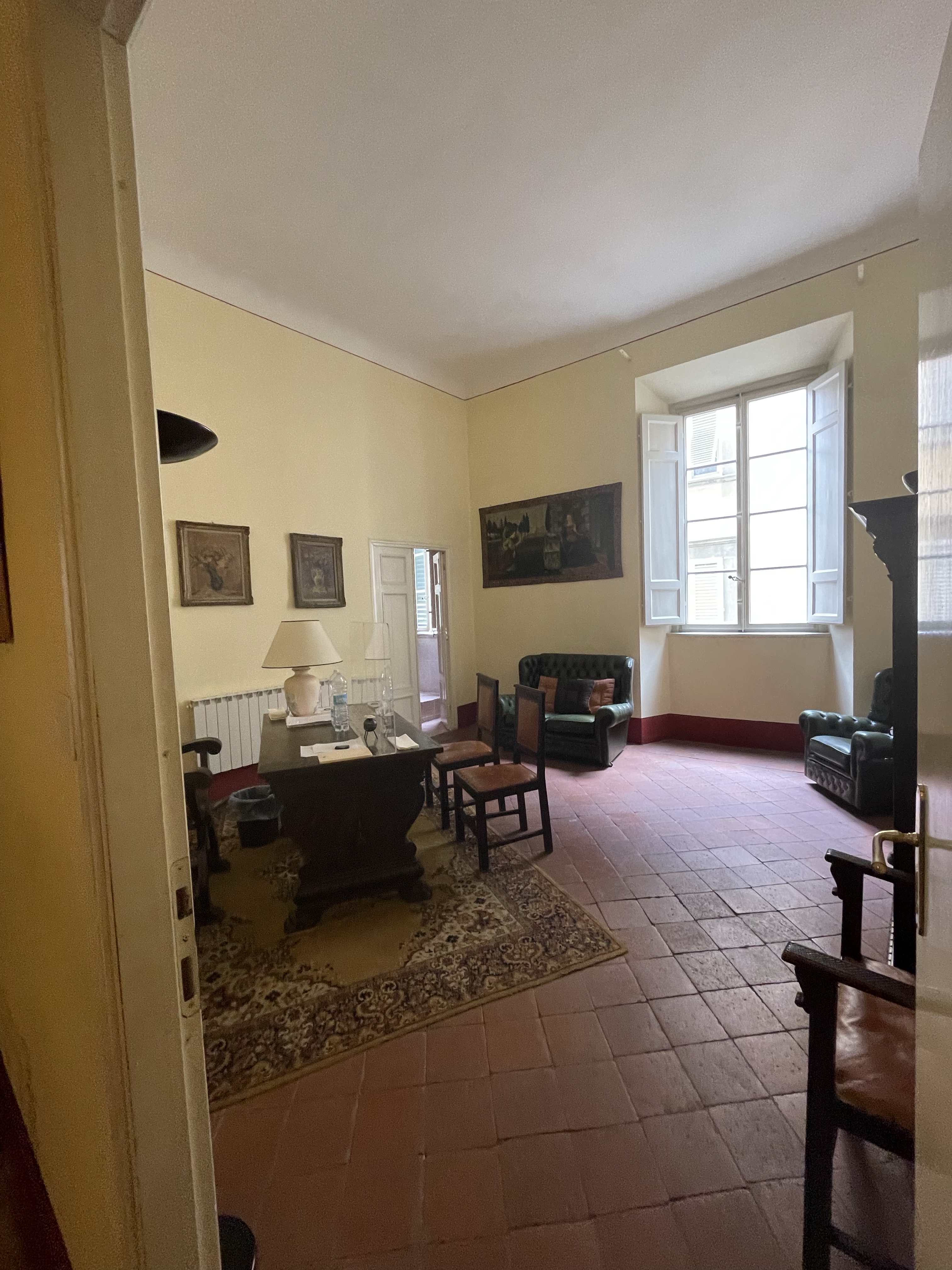 “But, we’re not buying art,” was Matt’s very logical stance, though he agreed to take a look anyway. Within minutes, the apartment had him at the entrance. In the 15th and 16th centuries in Italy, the fine homes of nobles would often reserve the floor above ground level (known as the first floor in Italy, but considered the 2nd floor in the US) as the space exclusively for entertaining guests. (Anyone who knows us well, knows that’s pretty fitting).