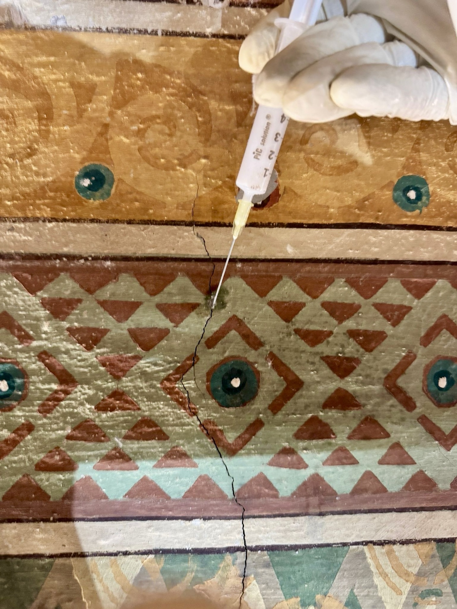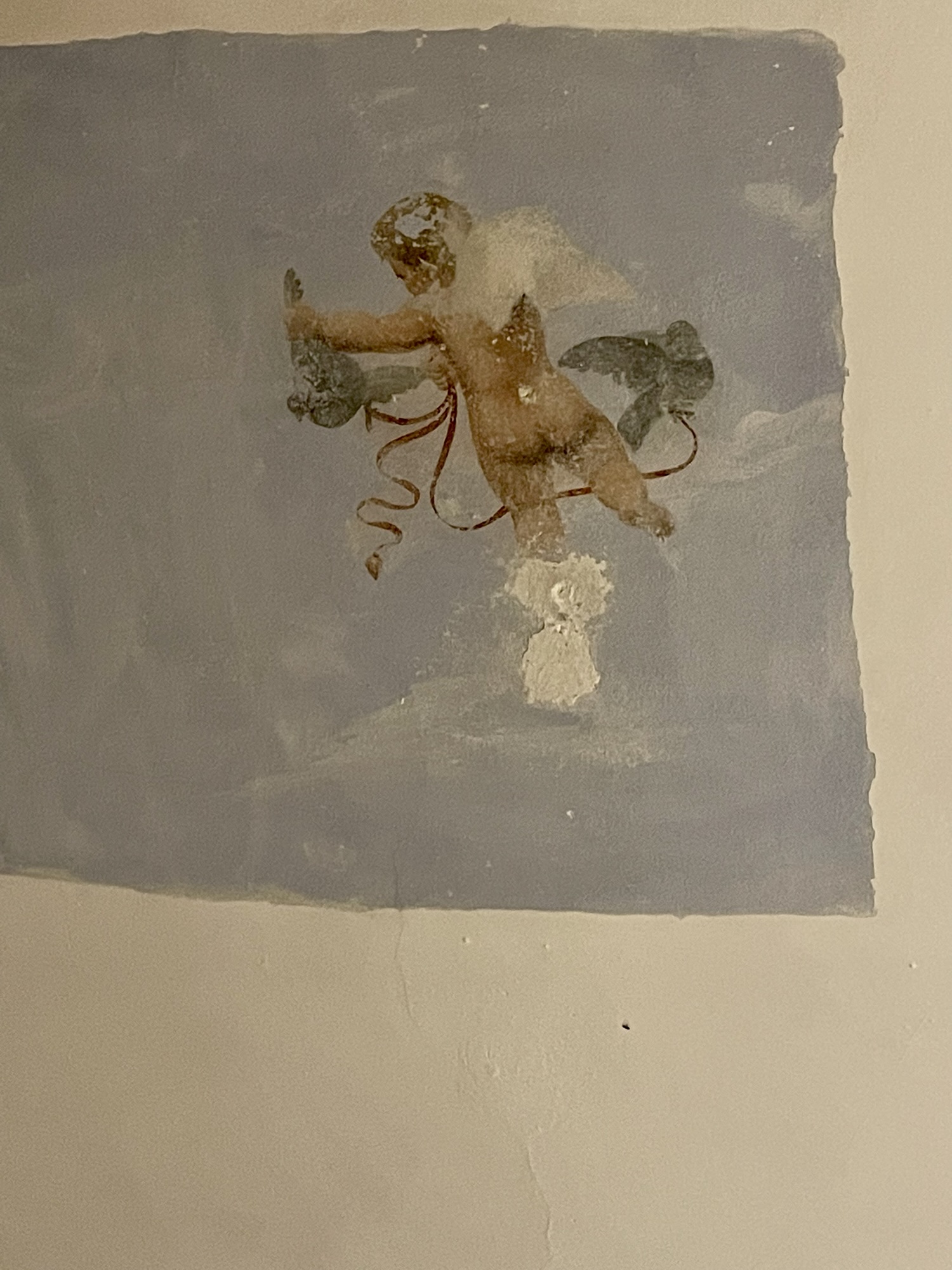 What we do know is that while we have the privilege of being their guardians, we will take that role with the attention and care they deserve. Here’s a first peek into the restoration process. The goal is to fix cracks and stabilize vulnerable areas, clean off centuries of dust and dirt, and lightly touch up paint where needed. As with the home’s other frescoes, we won’t apply a heavy hand. In our opinion, the worst thing we could do would be to overpaint in an attempt to make them appear ‘new’ or flawless. They wear their age and history beautifully. We’re just ensuring they stay around a bit longer, at least until the next proprietor comes along and, who knows, maybe even decides to paint over them again.