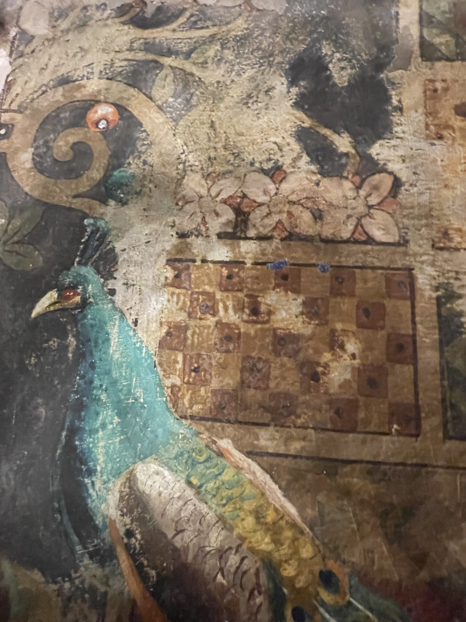 Through all of these restorations, we never lost sight of the peacocks and the room we simply call Il Pavone. We’ll help you to reclaim your original splendor, we promised. It’s fitting that this is our last fresco to restore as it’s likely the “newest” in the apartment. We’re still researching its origins, but it seems most in line with a style flourishing in Italy from approximately 1890 – 1914.